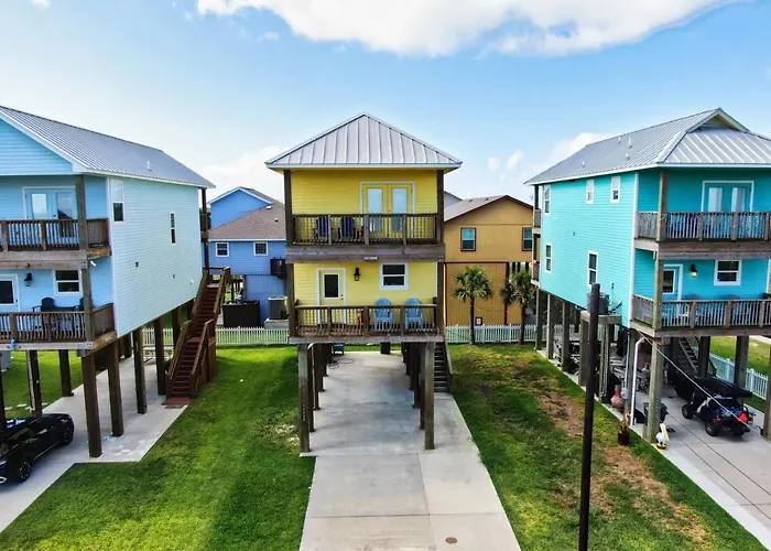 Welcome to the charming Yellow Beach Haven, where coastal elegance meets home-like comfort in the scenic West End district of Galveston. This inviting two-story retreat offers breathtaking views and four spacious decks, allowing guests to savor the fresh ocean breeze and stunning sunsets mere steps from the sandy shoreline. Just a short drive away, you can explore iconic attractions, with the Pleasure Pier only 11 km and the historic Moody Mansion Museum just 12 km from your doorstep.